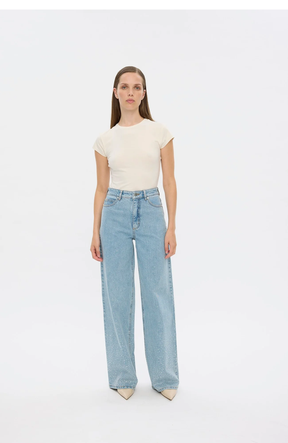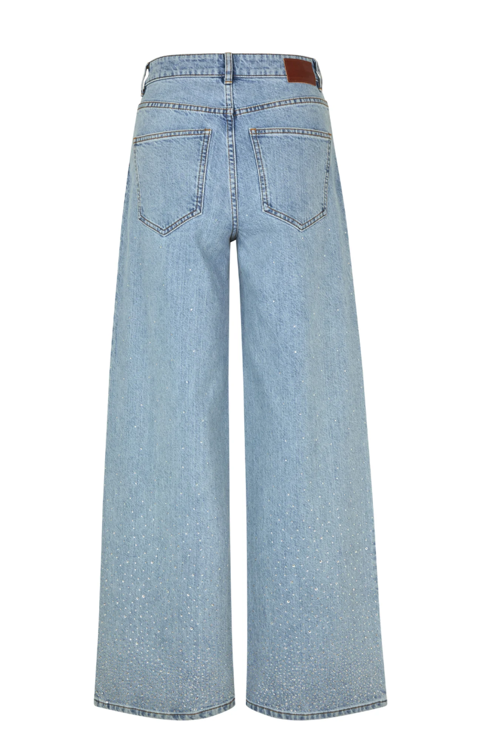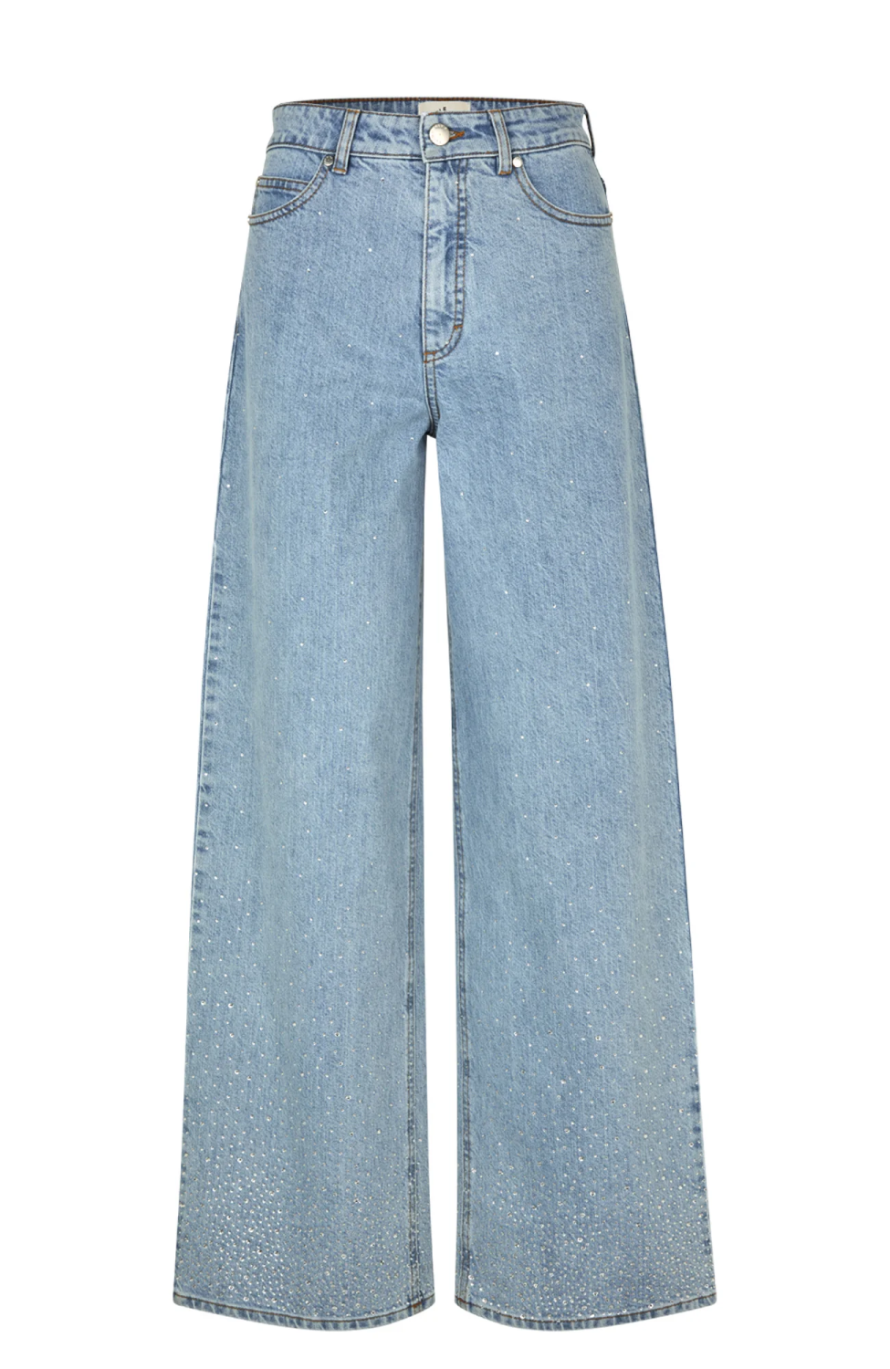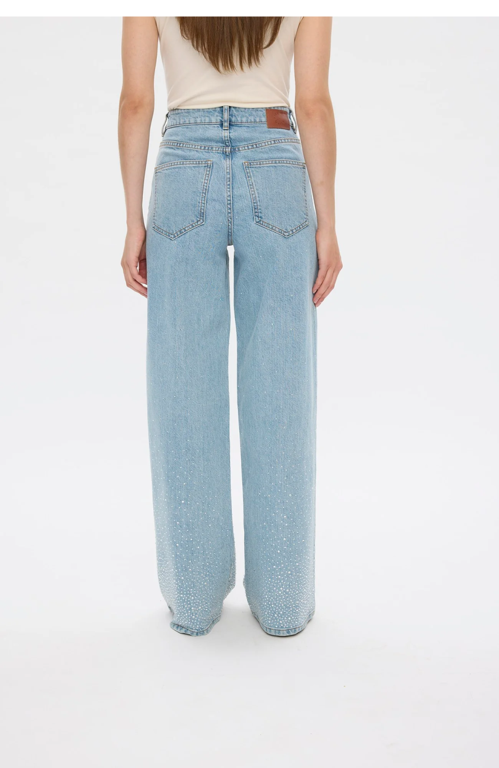 Kul jeans med vid passform har en høy midje, skreddersydd for å fremheve midjen din samtidig som de opprettholder en avslappet passform rundt hoftene. Det rette snittet skaper en elegant profil som er både flatterende og allsidig.