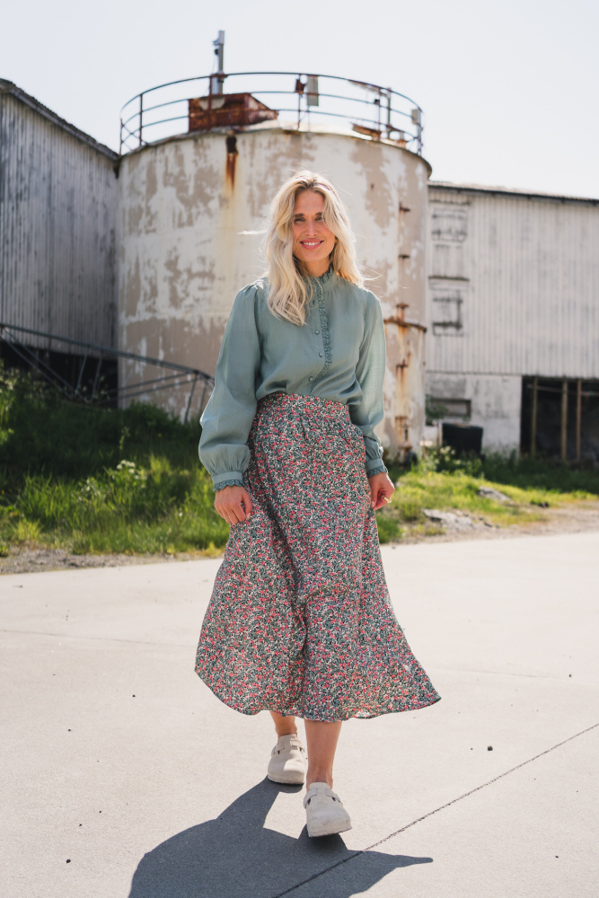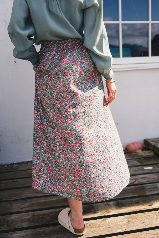 Skjørtet har midi-lengde og det røde og grønne blomsterprintet vil være et herlig tilskudd til garderoben. Komfortabel passform med elastisk strikk i midjen som gir en behagelig og fleksibel passform.
