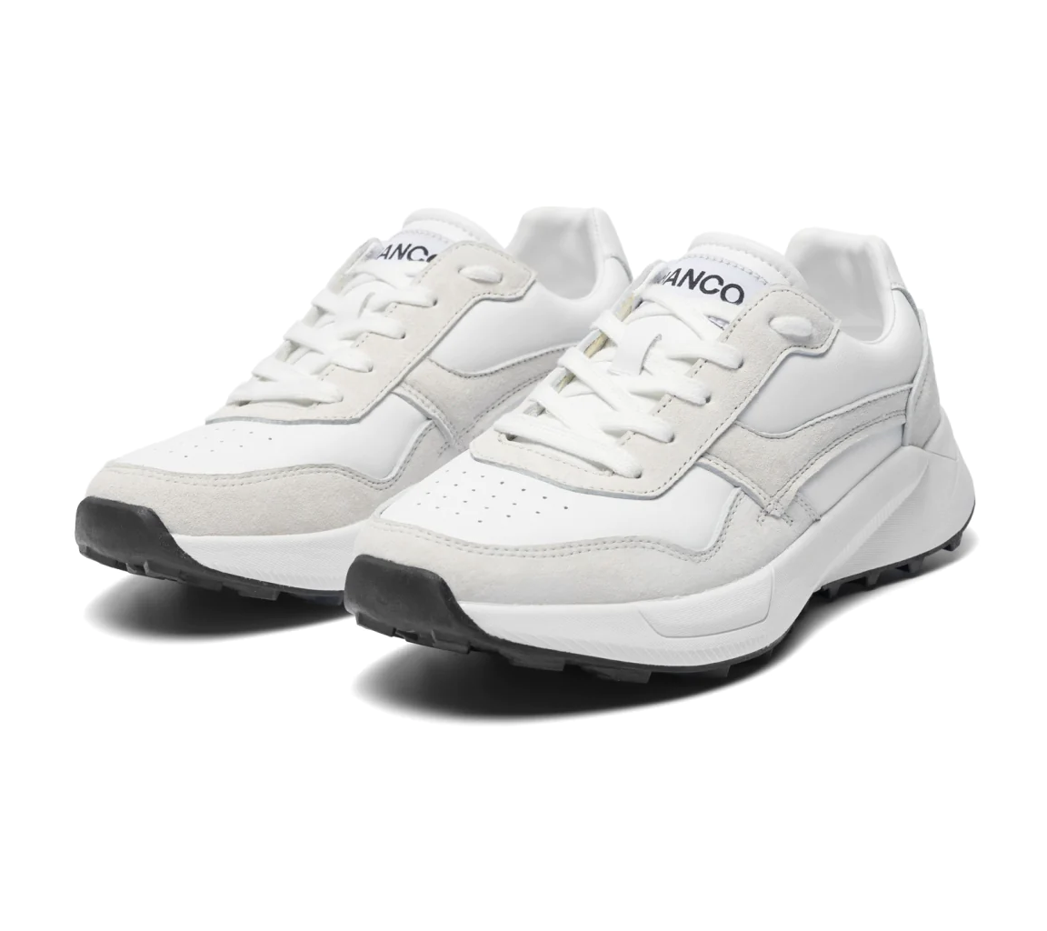 Sporty sneakers i hvitt skinn med paneler i semsket skinn. Bialucy Sneakers har rund tå, gummisåle og logo på hælen og tungen. Veldig lette og gode på foten.