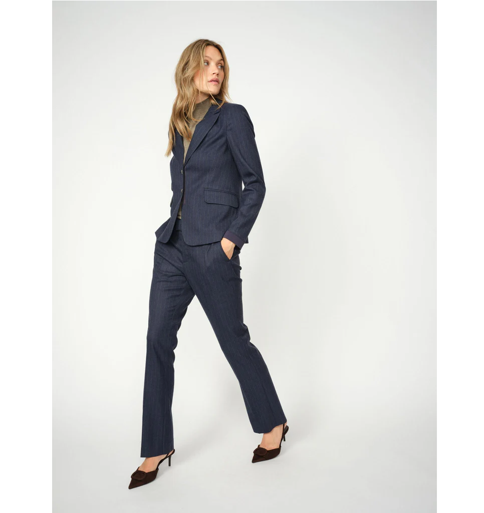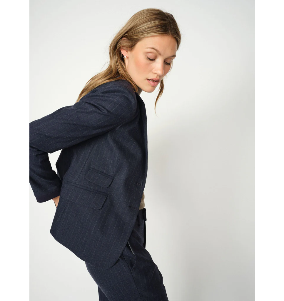 Elegant klassisk blazer fra Mos Mosh med tynne striper. Blazeren har enkelt spenne, om er like fin å bruke lukket som åpen.