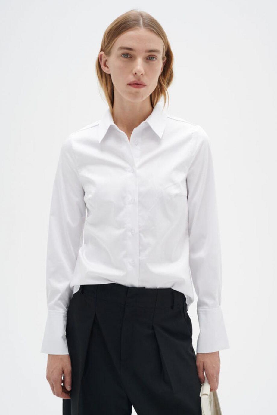 En klassisk hvit skjorte med tettsittende passform fra Inwear. Ermene har brede mansjetter med knappelukking. Skjorten har en innsving i midjen, noe som gjør den ideell å bruke under en dressjakke.
