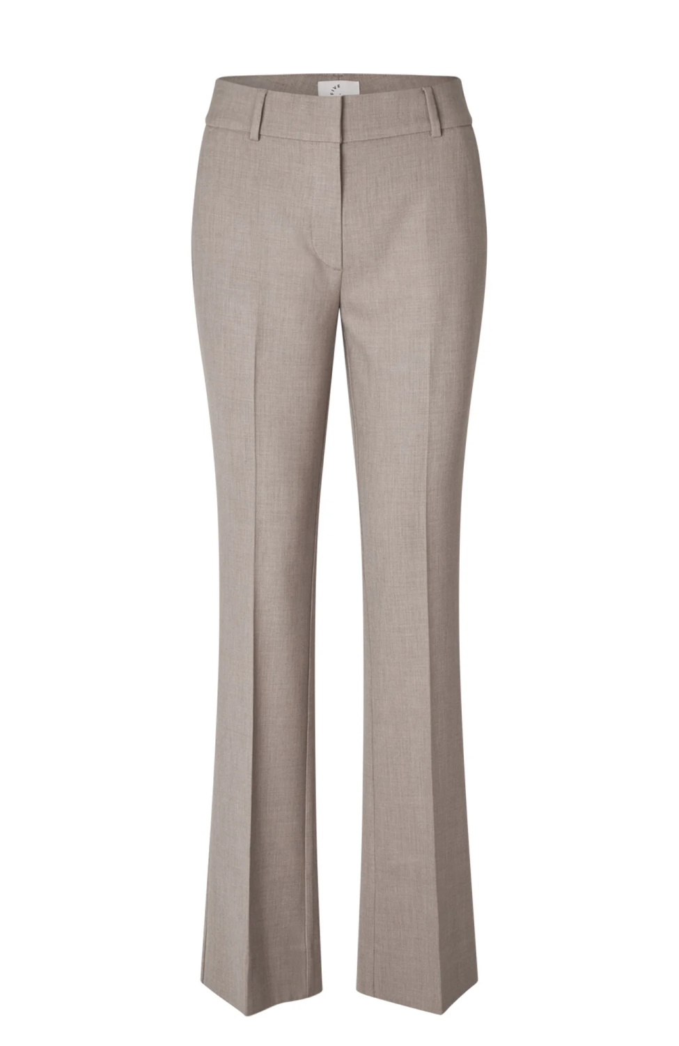 Elegant dressbukse med an klassisk passform. Medium høyt liv med bred linning som lukkes med hemper og glidelås. Rett modell med litt flare i bena og regular lengde. Lommer i sidene og jukselommer bak.