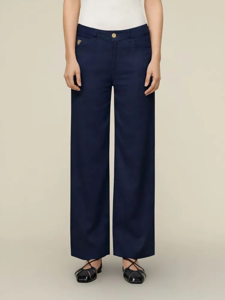 Culotte Linen Summer er en komfortabel og stilren culotte-bukse med et tidløst uttrykk. Den er laget av 100 % lin, som gir en lett og pustende kvalitet – perfekt for varmere dager. Buksen har høyt liv, rette vide ben i ankellengde og klassisk 5-lommersdesign med beltehemper. Den lukkes med knapp og skjult glidelås i front, og har en diskret skinndetalj med logo bak.