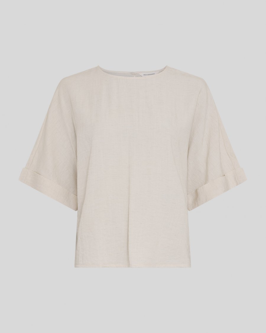 En lett og sofistikert ermeløs skjorte, designet for en avslappet, men gjennomført stil. Den luftige, vevde kvaliteten føles behagelig mot huden.