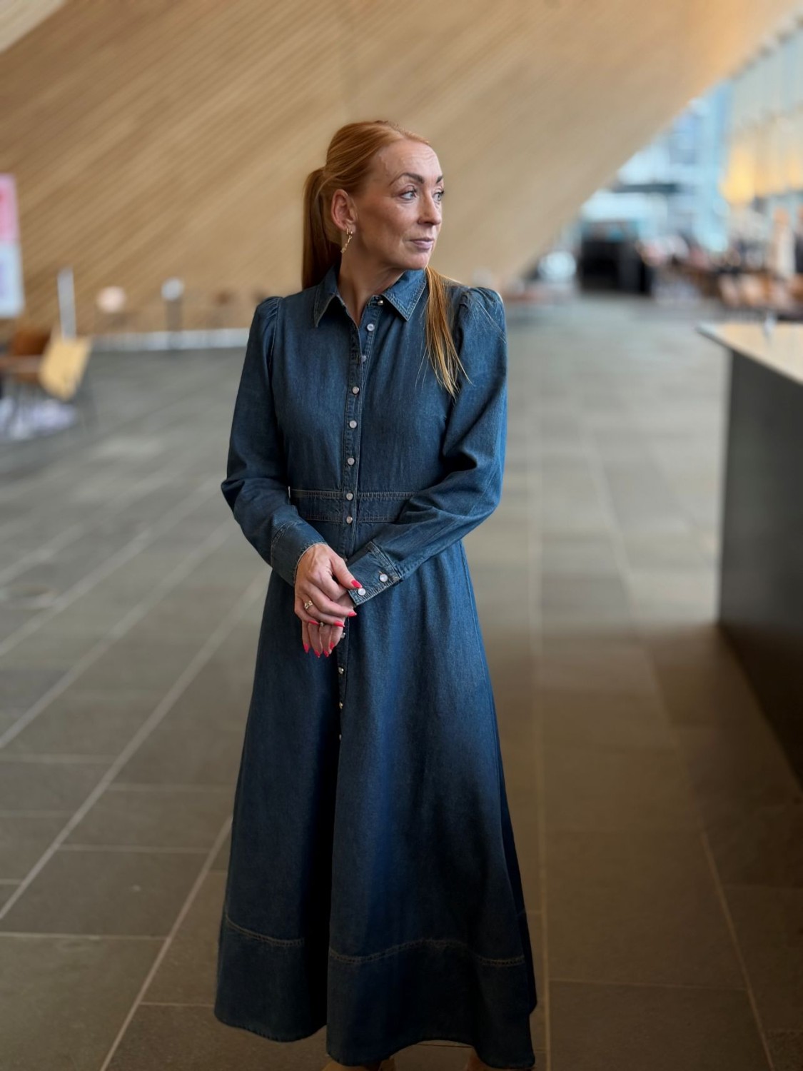 Denim button down dress fra byTiMo.