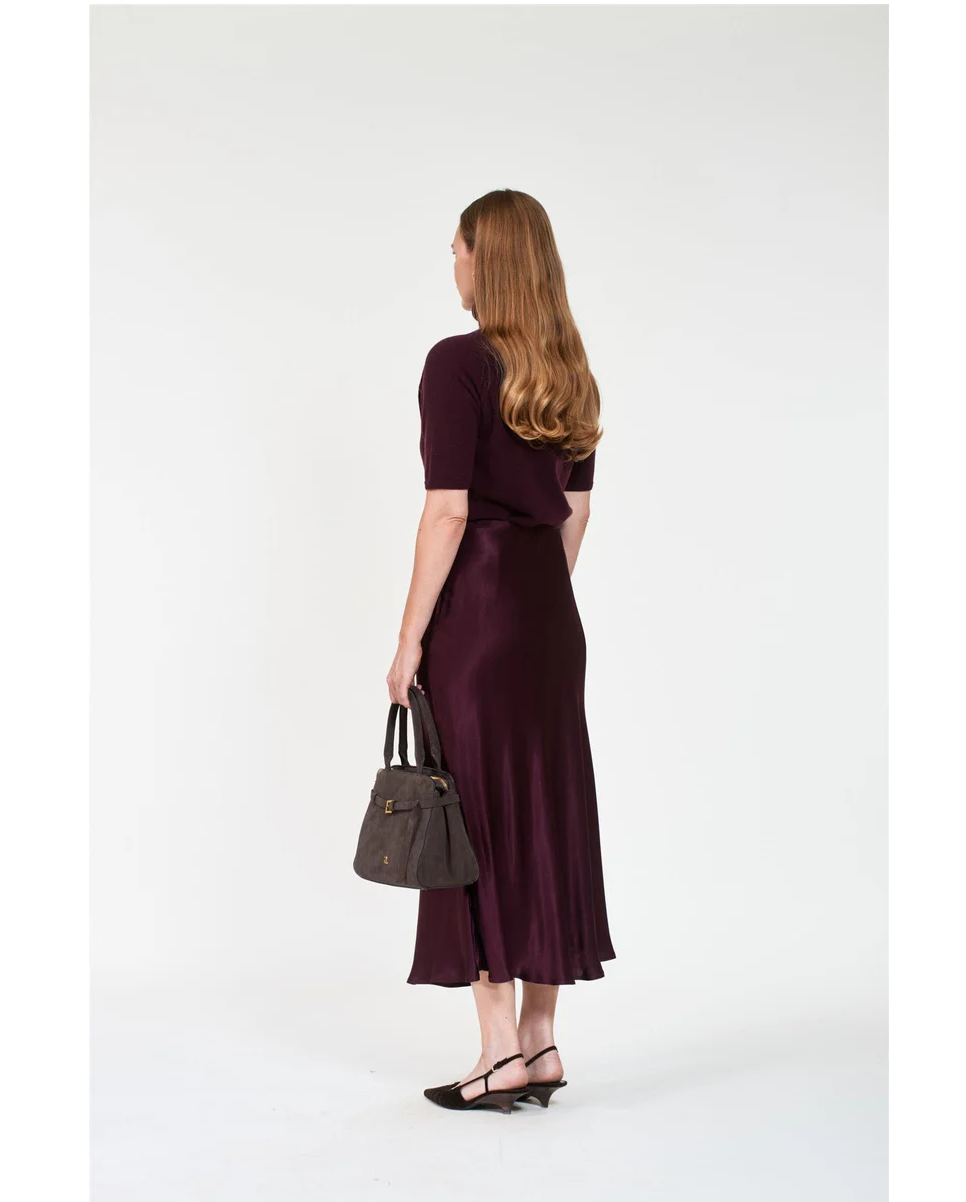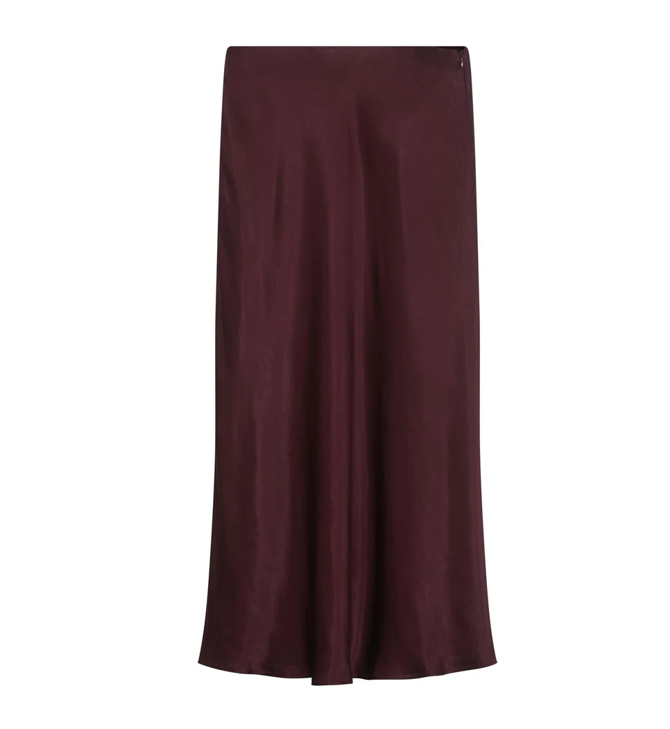 Elegant A-linjeskåret skjørt i en lett og luftig sateng. Skjørtet er konstruert med underskjørt for et mykere fall og glidelås i siden. Allsidig skjørt som kan brukas både til hverdag og til fest.