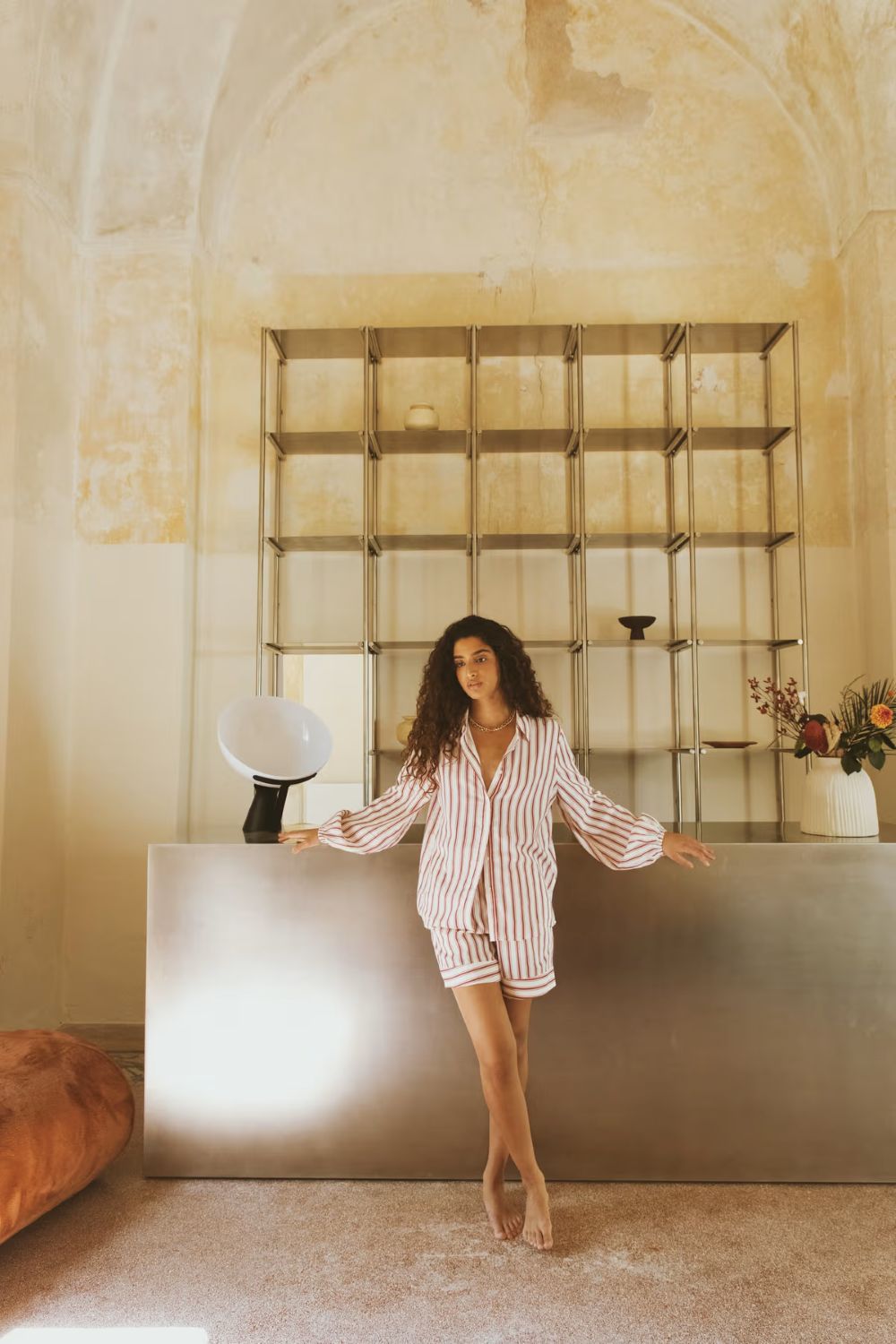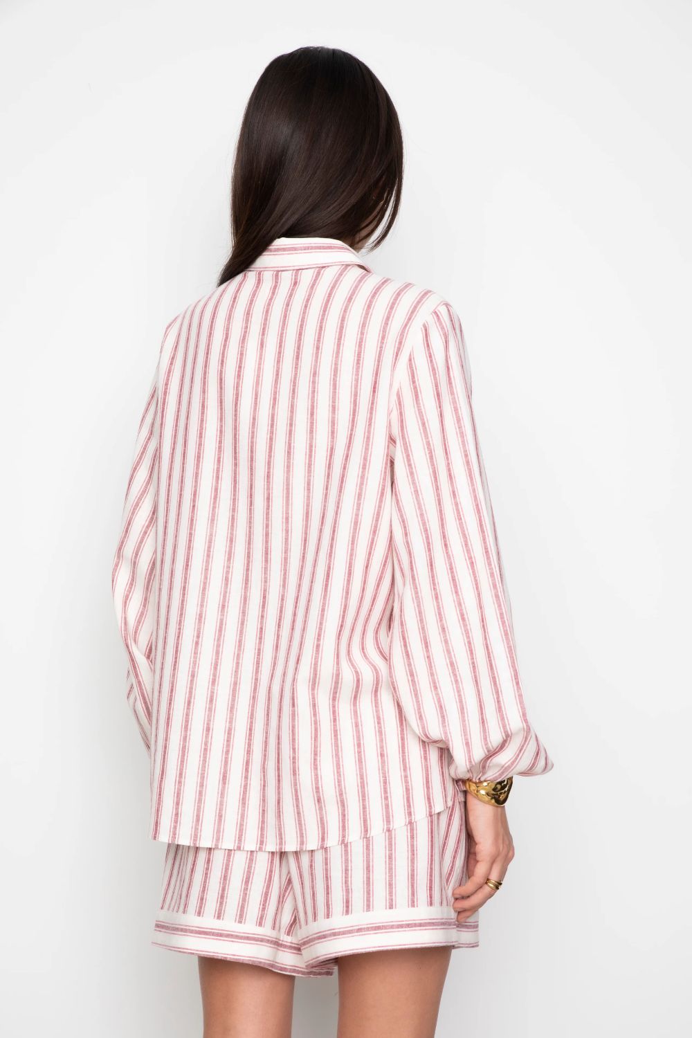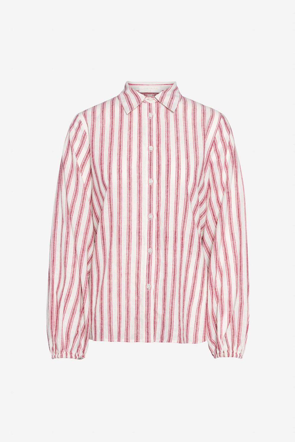 Fable Shirt er en løstsittende bluse med garnfarget stripemønster. Designet med vanlig krage og knappestolpe, og oversized ermer med elastiske mansjetter. Perfekt sammen med de matchende Lilia Shorts.