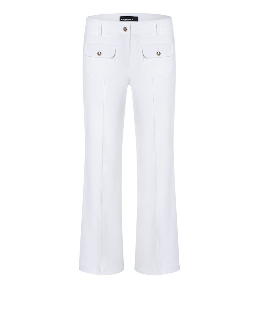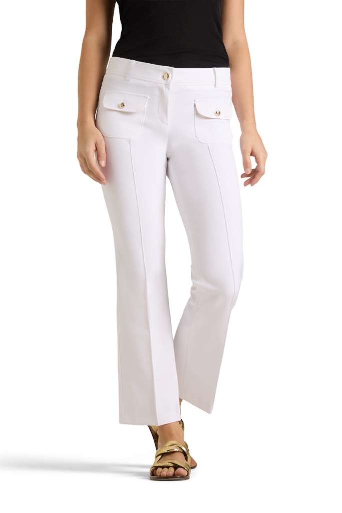 Kjempefin. ankel kort bukse med smale ben og litt sleng nederst Buksen har passe høyt liv med franske lommer foran og sydd press i front.