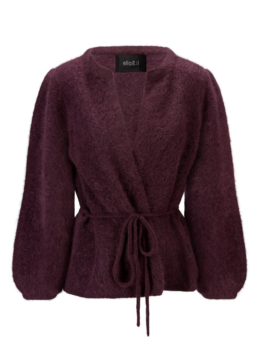 Cardiganen har lange ballongermer og rund hals med feminin V-utringning. Cardiganen har omslagseffekt og knytebelte i livet, som gir en feminin og flatterende passform. Cardiganen er en allsidig og feminin cardigan strikket i en varm mohair-mix.