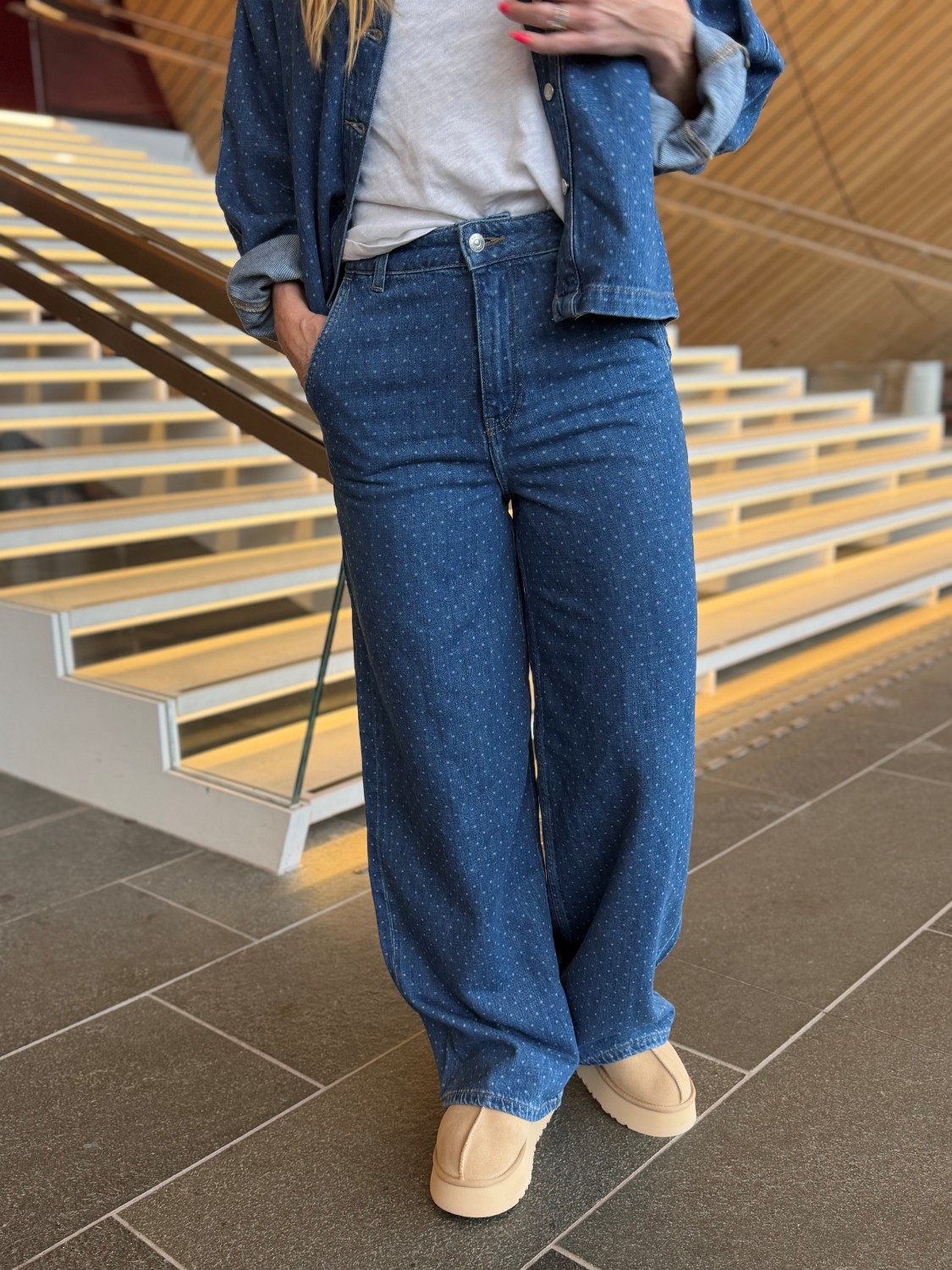 Jace Trouser fra Camilla Pihl er den perfekte kombinasjonen av komfort og sofistikert design. Denne buksen kommer i fargen Mid Blue Dot og har et tidløst mønster som gir antrekket ditt det lille ekstra. Med sin løse og rette passform tilbyr den en moderne silhuett som passer til både hverdag og finere anledninger.