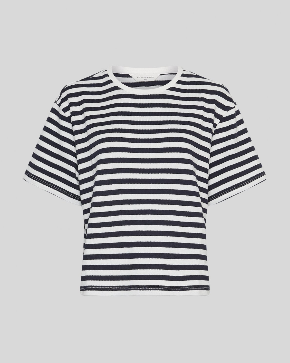 Bahara er en lett, kortermet genser med svarte horisontale striper. Det er en klassisk topp med rund hals, som kan være en uanstrengt utgave av ethvert antrekk, og et sterkt grunnlag for en allsidig garderobe, da den kan styles på mange måter.