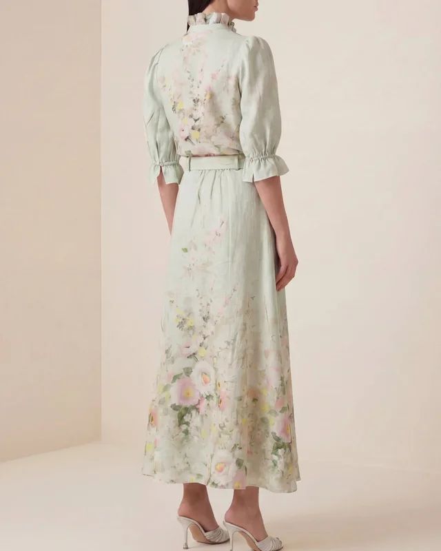 Nydelig maxi skjørt laget i høykvalitets OEKO-TEX-sertifisert lin. Skjørtet har maxi-lengde, luftig A-formet silhuett, sideglidelås og medfølgende matchende belte.