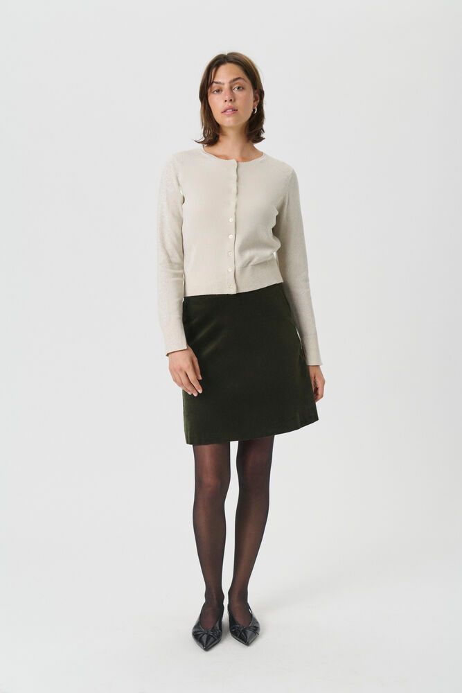 Skjørtet har A-linjeform og myk stretch. Med sin tidløse passform og myke materiale er det perfekt til både hverdagsbruk og festlige anledninger.