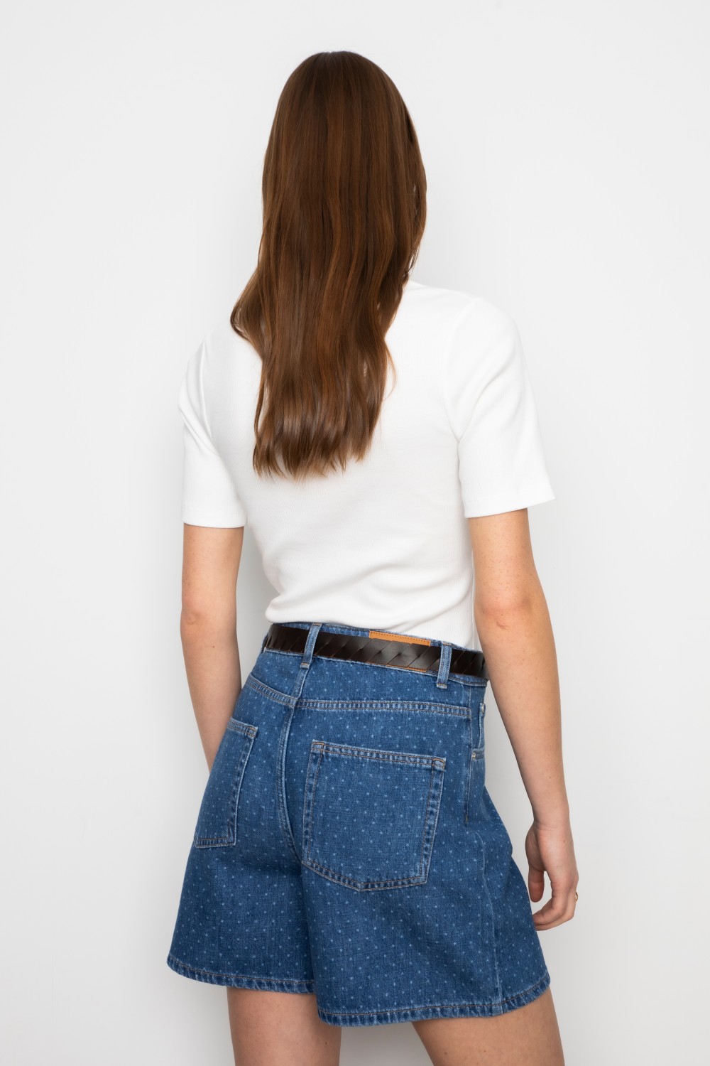 En klassisk denimshorts med høy midje, YKK-glidelåsgylf og femlommersdesign. De er laget for en tidløs silhuett som flatterer midjen og hoften, og er et varmt vær-essensielt plagg som er tilgjengelig i tre allsidige farger.