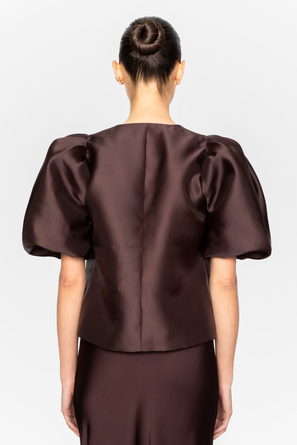 Maeve Blouse er en lett og løstsittende bluse med smal V-hals og korte voluminøse ermer som ender rett over albuen.
