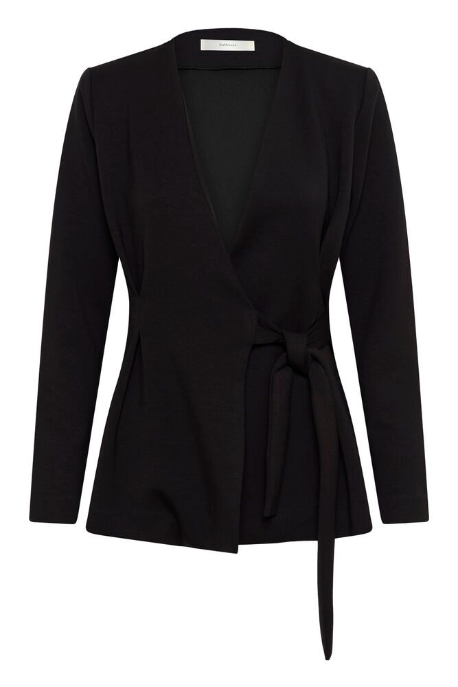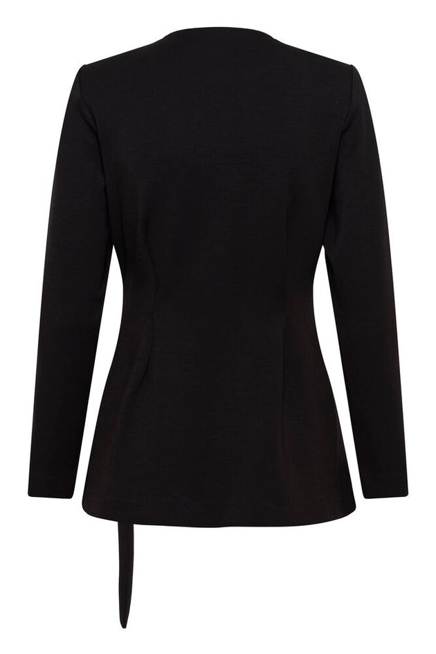 En elegant dressjakke i sort – et tidløst og sofistikert tilskudd til garderoben. Jakken har et feminint snitt med tilhørende belte som fremhever midjen, og den kan enkelt styles både til jobb og penere anledninger. Den har fin V-hals, lange ermer og en flatterende passform.