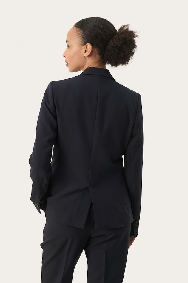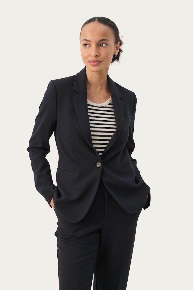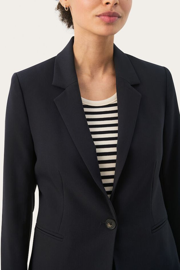 Lekker, innsvingt dressjakke i myk kvalitet med enkelt spenn og stikklommer foran.