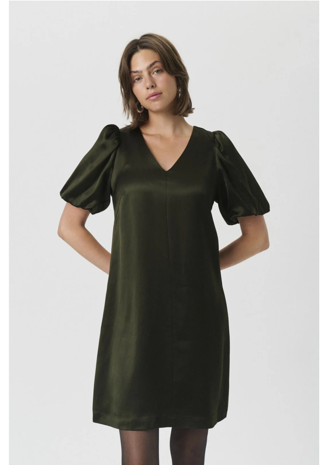 En tidløs liten sort kjole med en moderne vri. UlvaPW Dress har korte puffede ermer, V-hals og en rett passform som gir en elegant og enkel silhuett.