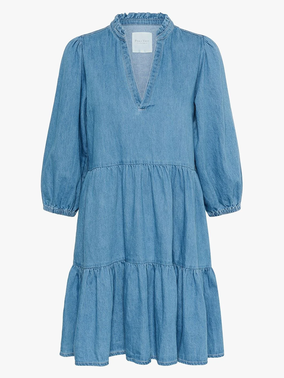 Nydelig denimkjole med feminine detaljer. I et superlett og behagelig bomullsmateriale som sørger for komfort hele dagen.