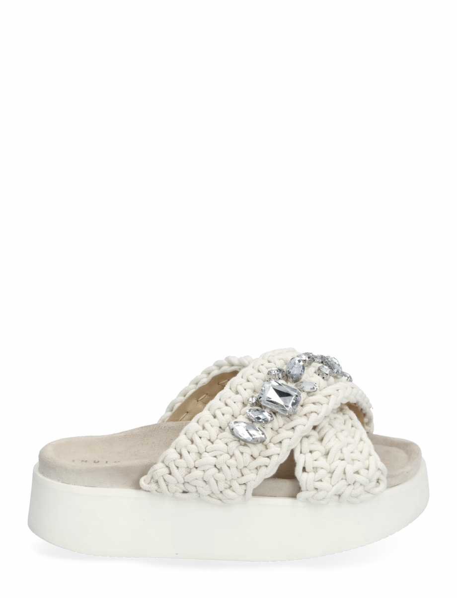 Den ikoniske Woven Stones-sandalen med platåsåle! Den heklede stroppen gir en herlig bohemsk følelse.Sandalen er dekorert med fine steiner som gjør disse perfekte å bruke fra hverdag til fest på kvelden. Disse passer like fint til sommerkjolen som til et par lyse jeans.